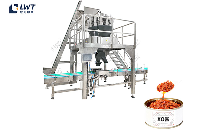 XO醬灌裝生產線是專為半流體、含顆粒物料設計的自動化系統。通過多設備協同,實現從空罐處理到成品包裝的全流程標準化作業。 核心設備按“預處理-灌裝-后處理”流程銜接:絞籠翻罐規整空罐,空罐清洗去污烘干,10頭多頭秤罐裝計量,再經稱重檢測、液體灌裝、封口、上蓋、壓蓋完成生產。
