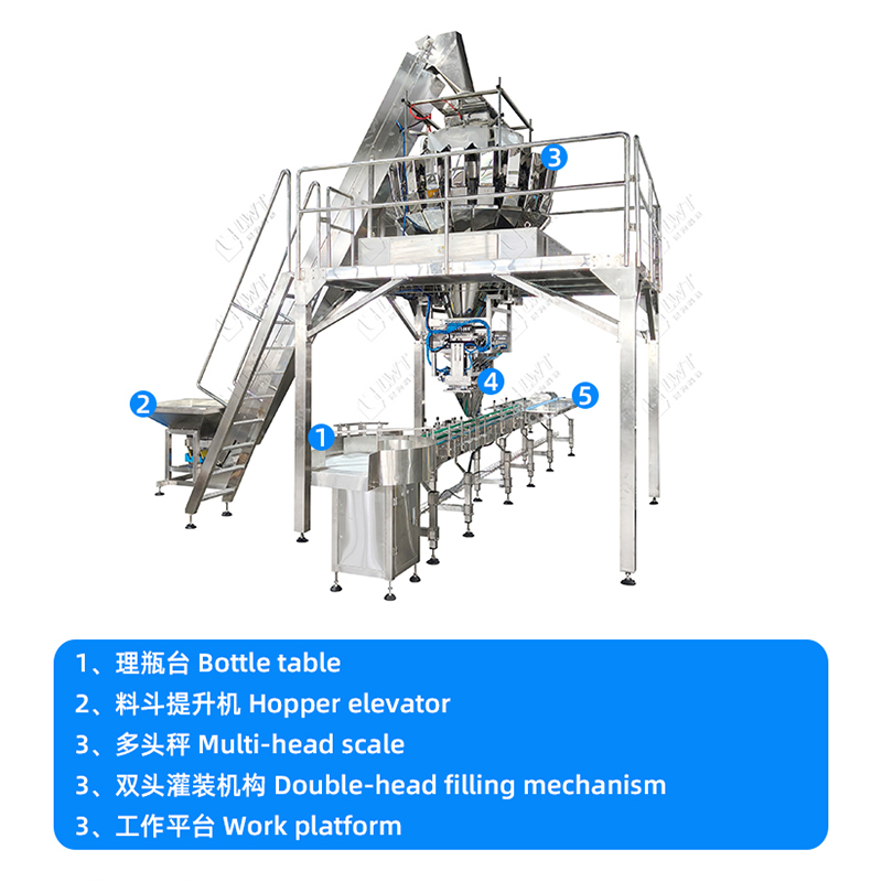 尼為智能該設備可自動完成固體原料的計量、送料、裝罐、成品輸送的全部包裝過程,并自動完成計數;