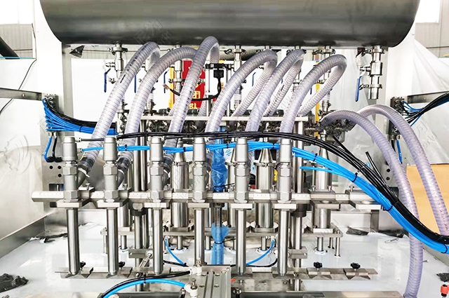 除番茄醬外,該灌裝機還可用來灌裝辣椒醬、鹵肉醬、蜂蜜、各類果醬和含果肉飲料等等,設備采用伺服控制,所以灌裝精度誤差范圍在±0.5~1%。灌裝頭內設的悶頭可有效防止物料滴漏與拉絲,灌裝頭下方配有接料盤,可防止殘余物料污染設備。
