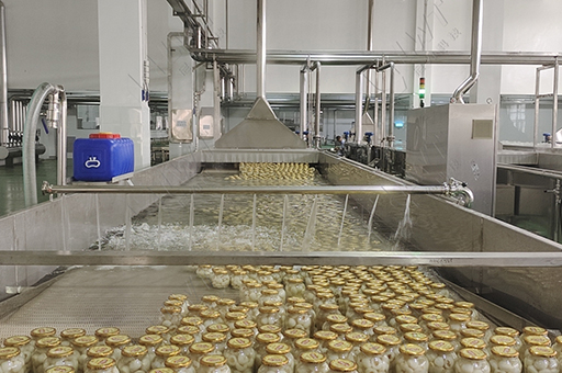 水果罐頭、果醬罐頭常用巴氏滾杠殺菌機來滅菌,殺菌槽內的熱水溫度控制在85-95℃之間,滾杠可以使產品均勻受熱,起到更好地殺菌效果。殺菌后自動再進入冷水段使產品降溫,這樣不僅可以給產品護色,還能保持食物的口感。
