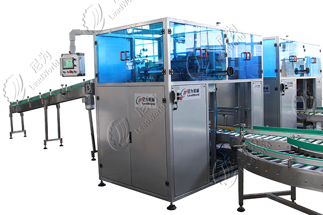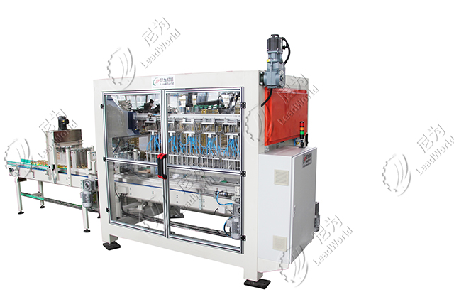 鏈輪式裝箱機主要工作方式是通過抓頭抓取設定好數量的產品放入箱內,抓頭有磁力吸取式,適合抓取帶磁力的產品,具有不傷罐的優點;有真空吸盤式,這種適用范圍廣,玻璃瓶、馬口鐵罐、塑料瓶等皆適用;有氣囊式,這種適合礦泉水瓶類的小直徑產品,氣囊抓頭吸力較強,更適合怕有跌落風險的玻璃瓶;還有海綿吸盤式,這種適合產品表面相對平整、重量較輕的袋裝產品裝箱。